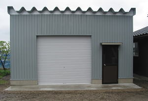 | < 上市町 O邸 > 農機具・トラクターを入れる作業庫 シャッター付き |